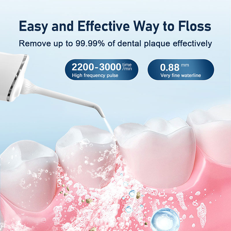 【 Deep Clean, Improve Gum Health, Freshen Breath 】 This water dental pick delivers high water pressure pulses at 1400-1800 times per minute, effectively removing 99.9% of dental plaque for deep teeth cleaning. This water dental pick massages the gums, promotes blood circulation, and addresses oral issues like bad breath, orthodontic teeth