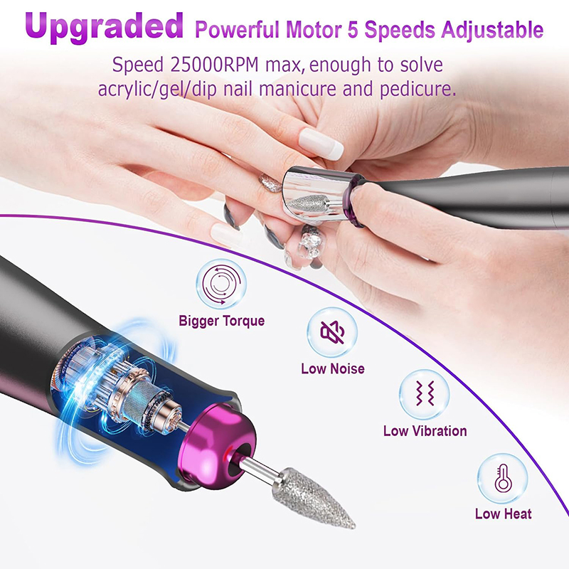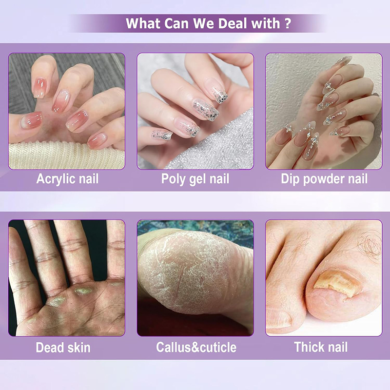 Elektrikli dırnaq qazma maşını Təkmilləşdirilmiş güclü motor, akril dırnaqları, poli gel dırnaqları, böcək geli, daldırma tozu dırnaqları, cutikulları, ölü dərini, kallusları və qalın dırnaqları çıxarmaq daxil olmaqla, bütün Manikür və Pedikür ehtiyaclarınız üçün mükəmməldir.