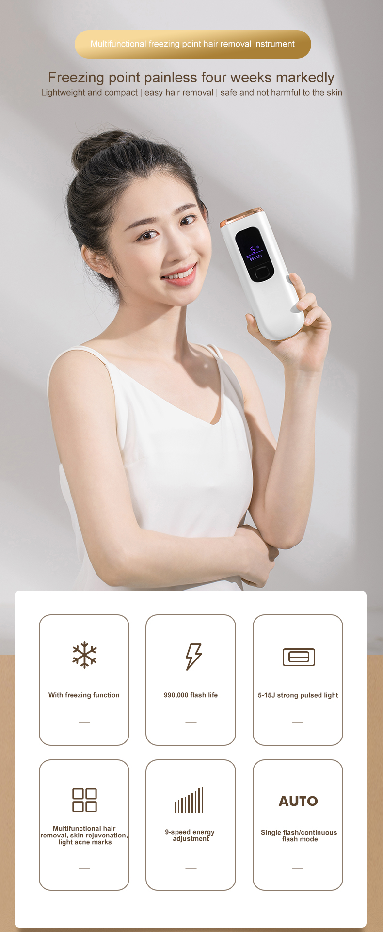 - Evdə ipək kimi hamar nəticələr əldə edin. Dərinizlə təmas nöqtəsində temperaturu 158℉-dən 67℉-ə endirmək üçün klinik dərəcəli sapfir buz toxunma texnologiyasını qəbul edir.