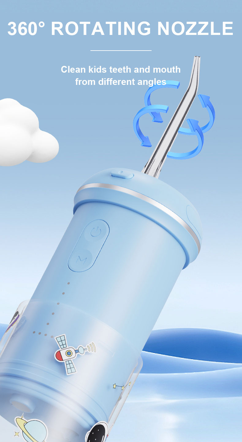 - Deep Cleaning: Equipped with 0.6mm ultra-fine dual water jets, the kids water dental flosser has a larger impact area and more uniform pressure. It can effectively achieve deep cleaning while protecting children's gums, cleaning tartar buildup.
