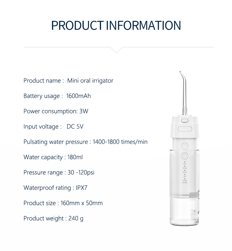 Bu water flosssr dental pick dəqiqədə 1400-1800 dəfə yüksək su təzyiqi impulsları verir və dərin dişlərin təmizlənməsi üçün diş lövhəsinin 99,9%-ni effektiv şəkildə təmizləyir. Bu su diş ipi diş ətini masaj edir, qan dövranını təşviq edir və ağız qoxusu, ortodontik dişlər kimi ağız problemlərini həll edir.