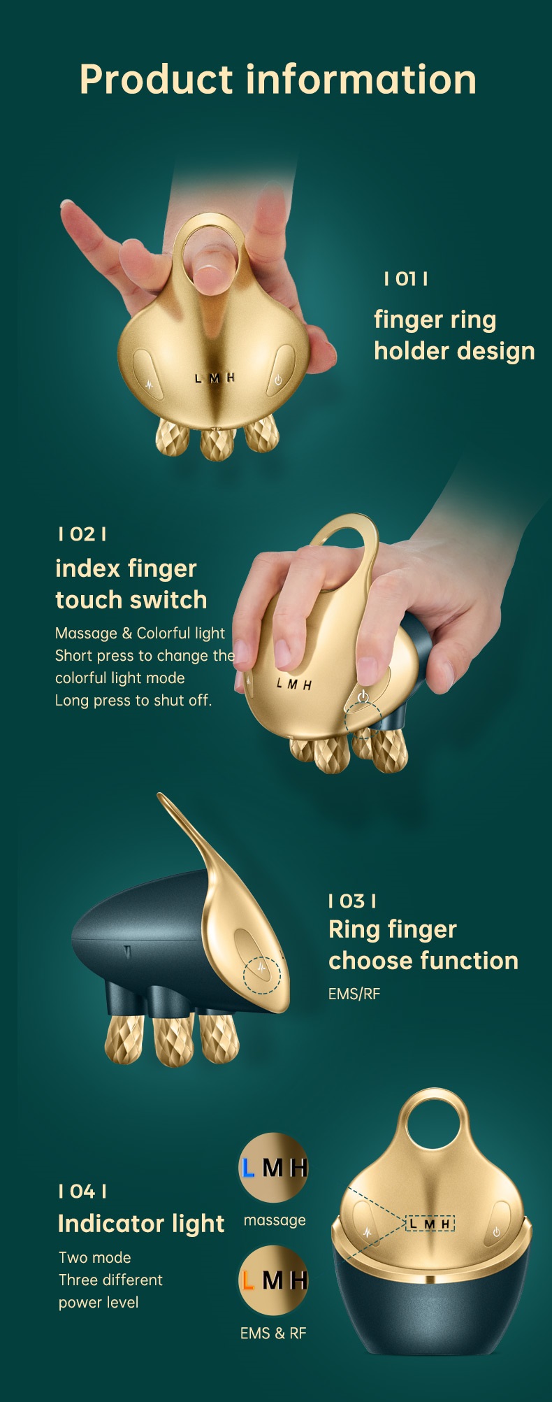2. Masaj+EMS+RF çoxfunksiyalı, 3 sürət və intensivliyi tənzimlənən
