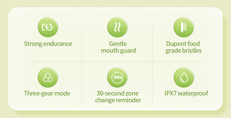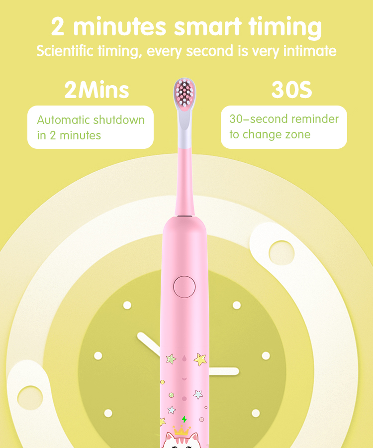 - AVTOMATİK TAYMİR: Bu elektron diş fırçası uşağınızı daha uzun müddət fırçalamağa təşviq edən, yaxşı fırçalama vərdişlərini inkişaf etdirən və diş çürüməsini azaldan daxili 2 dəqiqəlik ağıllı taymerə malikdir.