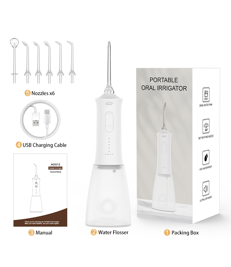 Paket: 1 ədəd su diş ipi gövdəsi+5 ədəd ipucu+1 ədəd USB kabel+1 ədəd istifadəçi təlimatı+1 ədəd hədiyyə qutusu.